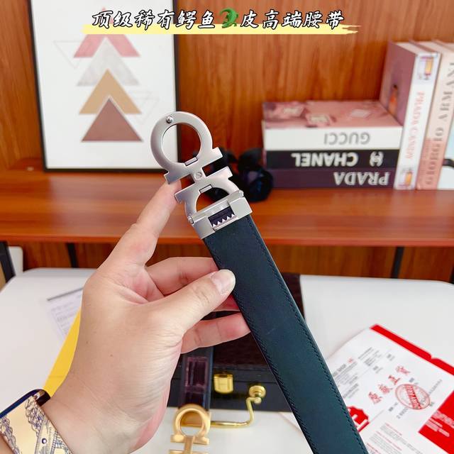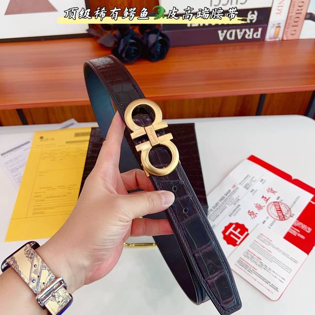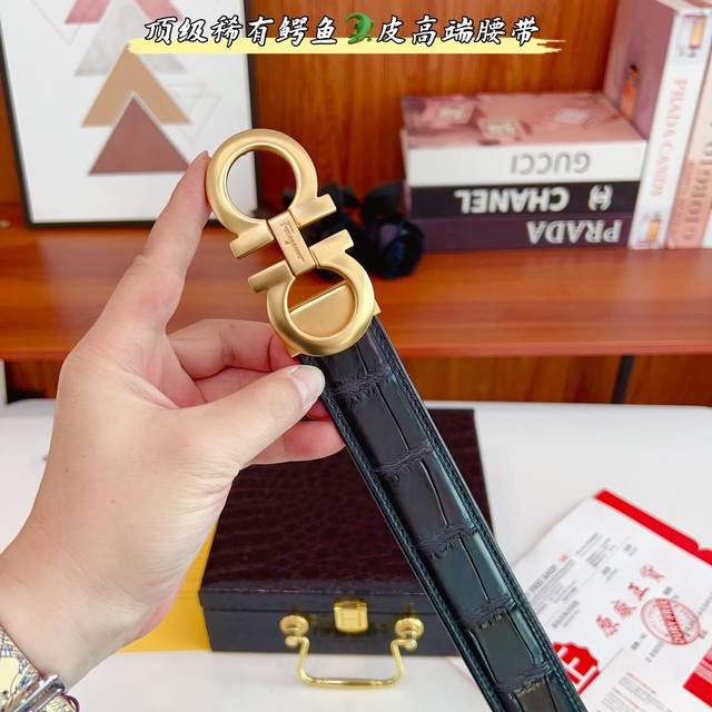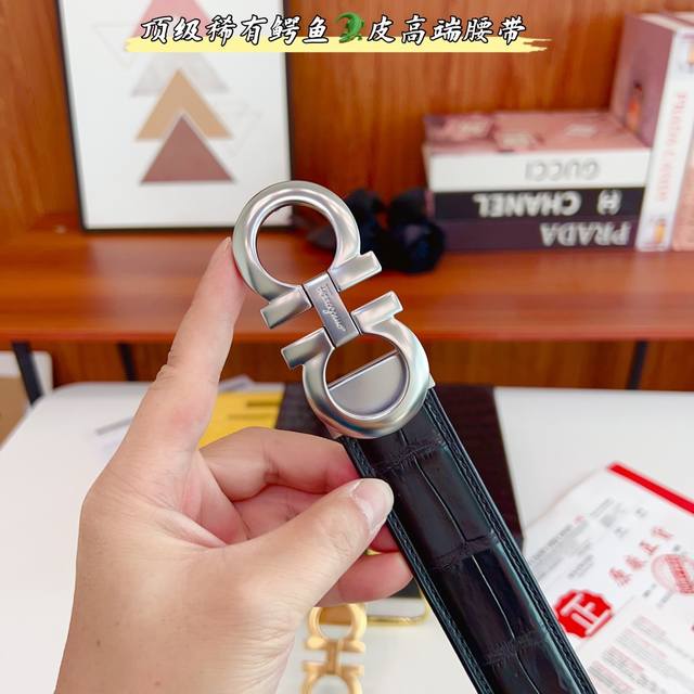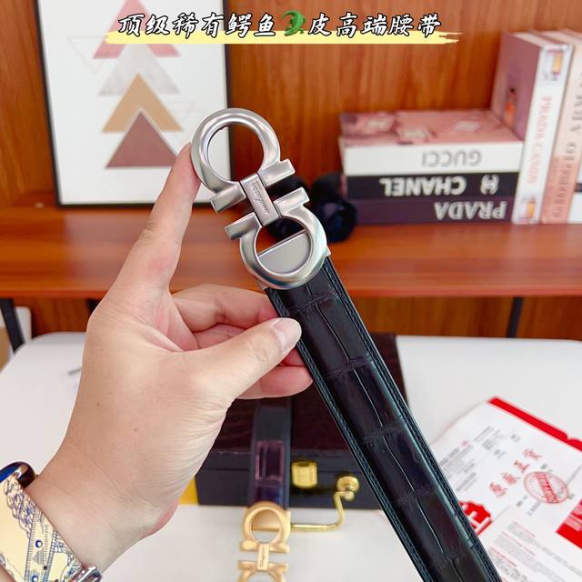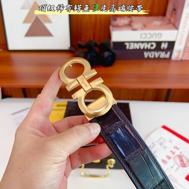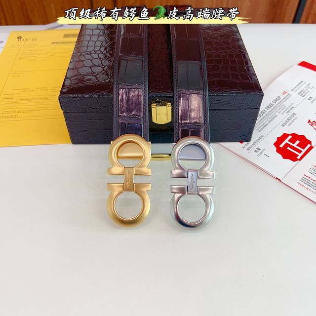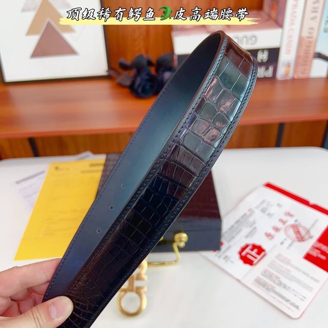 菲拉F家 水染雾面A级奢华高贵上档次鳄鱼肚皮 出货搭配精美手工钢扣- 宽度:3.5Cm长度105-125Cm