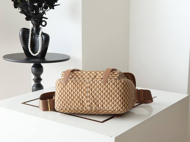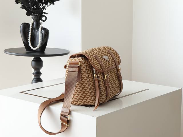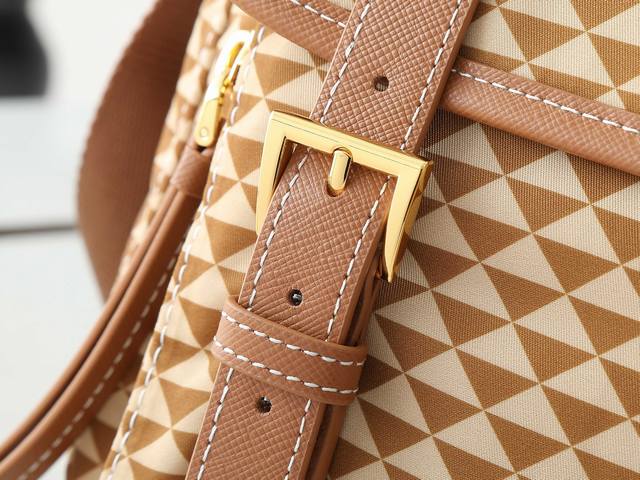 原单货新款Symbole1Bd383邮差包 这款邮差包采用织物印花尼龙面料 配十字纹牛皮 颜色吸睛夺目 包包上的印花由经典三角形组成 很耐看哟 空间大 真太太美