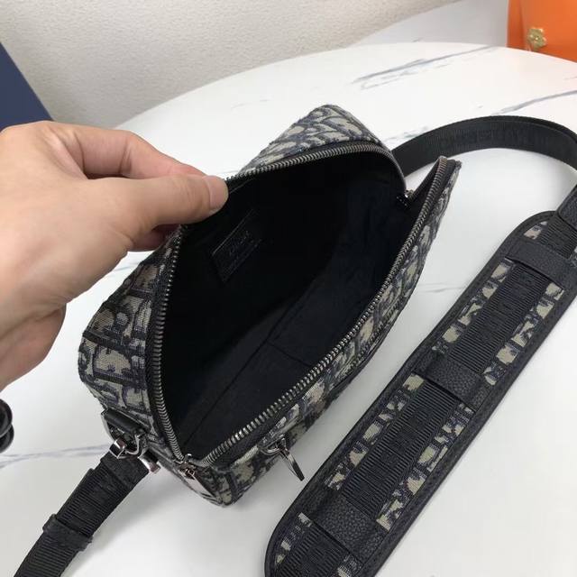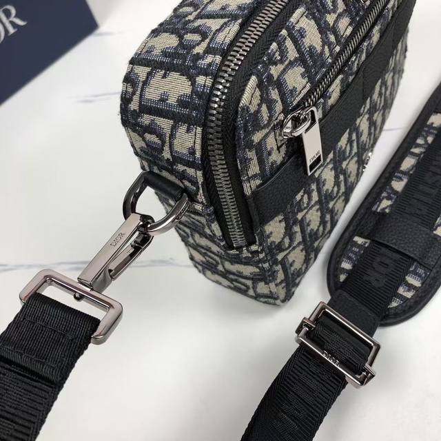 实用紧凑的风格 是作为日常单品理想的Safari信使包 由米色和黑色Dior Oblique提花材质制成 以黑色颗粒小牛皮细节为特色 拉链储物空间和前口袋可存放所有随身物品 并配有可调节长度的Christian Dior标志性肩带 非常适合单肩包或斜挎包