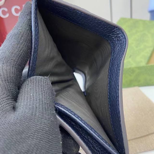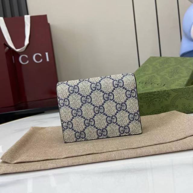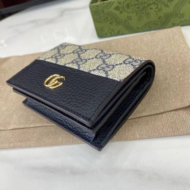 顶配版 源自70年代典藏设计的双G配件继续在Gg Marmont系列中绽放异彩 这款卡包采用米色和乌木色Gg Supreme帆布制作 饰以蓝色皮革细节