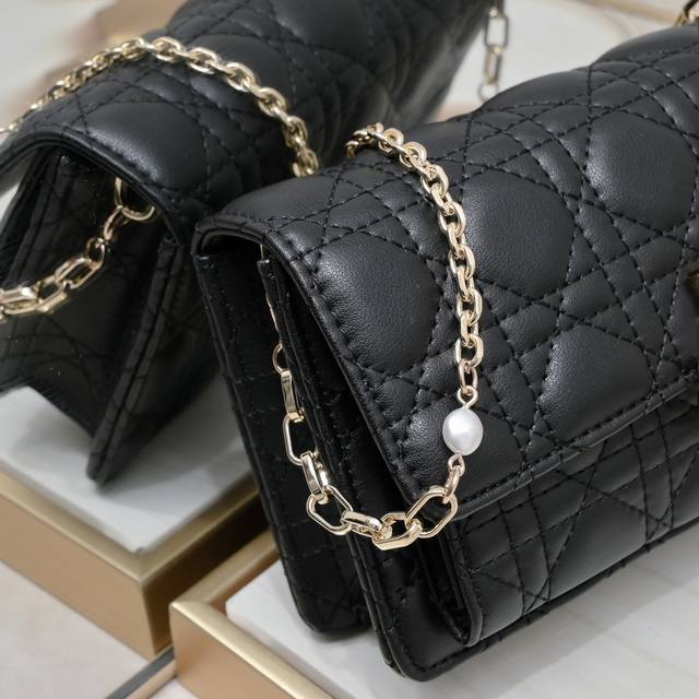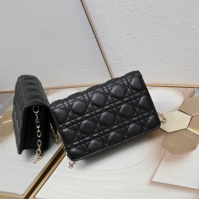 这款 Lady Dior 手拿包设计精巧 空间宽敞 采用白色羊皮革精心制作 饰以藤格纹缉面线 点缀以 D.I.O.R. 吊饰 彰显时尚经典的魅力 多隔层设计更加实用 可收纳各种日常用品 链条以珠饰装点 便于肩背或斜挎
