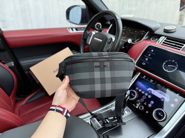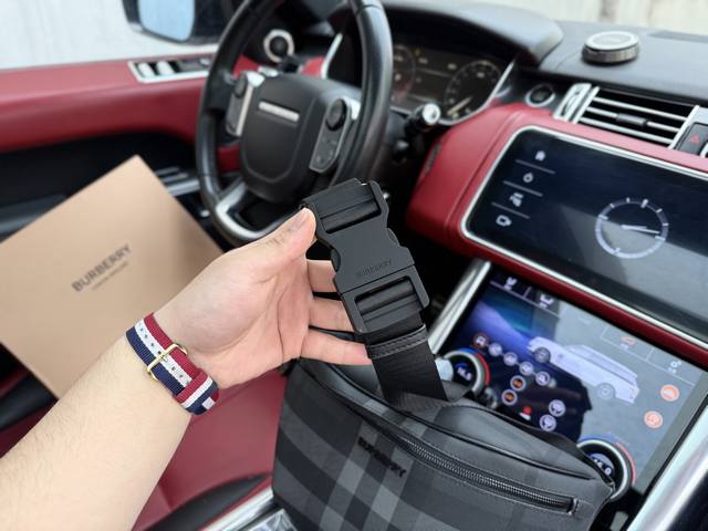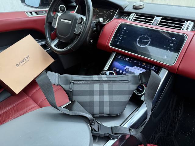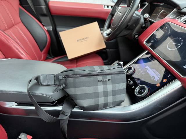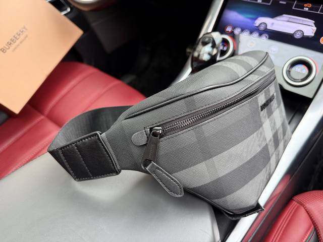 / 高端货新款 Burberry 巴宝莉腰包 博百利胸包斜挎包 Burberry博柏利 深色格纹环保 帆布 单肩斜挎胸包腰包 常规 男款 炭灰色 进口原厂防水布艺高