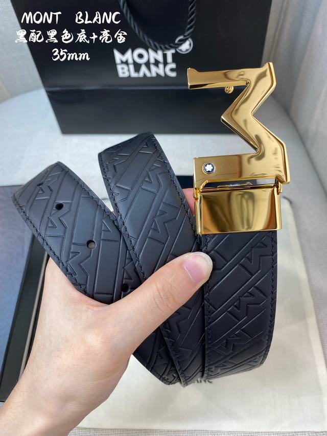 / Montblanc万宝龙 宽3.5Cm 采用头层牛皮 压花 精品钢扣 自由裁剪商务休闲皮带