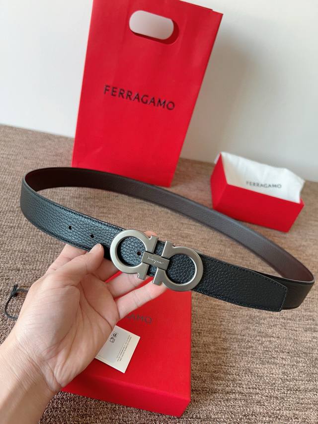菲拉格慕Ferragamo 宽度3.5Cm 高级定制款男士皮带 双面进口牛皮 可双面使用 自行选择搭配 真材实料 很有质感 时尚经典不失风范 搭配精品尾夹扣 长