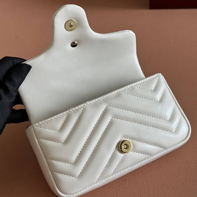 进口原厂羊皮纯铜五金 品牌标志性Gg Marmont系列匠心融蕴双G造型配件和切面链式包带 甄选柔软皮革缔就线条柔和的包型 这款迷你包袋缀饰20世纪70年代初次亮相的品牌典藏标识