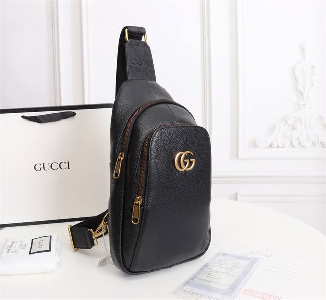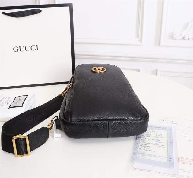 / 型号 677-1古奇G-家胸包上市头层牛皮 复古五金双G款式新颖 百搭 出门的必备之品 颜色:黑色 尺寸 32*17*4
