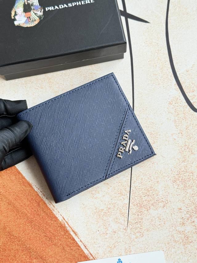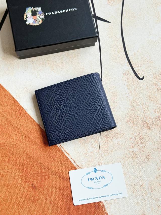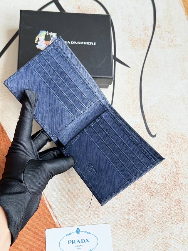 prada男士短款钱夹专柜最新款式 官网同步 正品开发 型号2M0513# 颜色 如图 蓝色 Blue牛皮质感极好 螺纹里布 进口白钢五金配件复杂拼色设计 更加时尚独特尺寸 长11Cm高9Cm