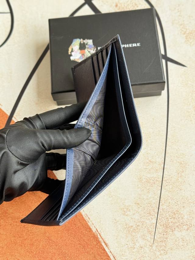 / prada男士短款钱夹专柜最新款式 官网同步 正品开发 型号2M0513# 颜色 如图 蓝色 Blue牛皮质感极好 螺纹里布 进口白钢五金配件复杂拼色设计 更加