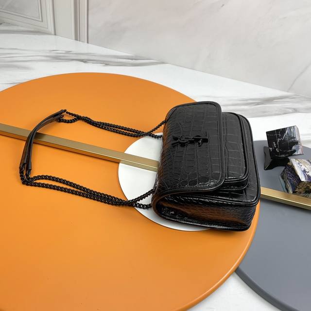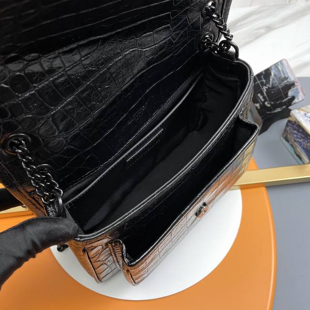 断货王Niki又出新花样 中光鳄鱼纹搭配黑色五金 酷感十足 百分百小牛皮压鳄鱼纹 立体的中光鳄鱼纹手感软糯舒适 五金使用鳄鱼纹路皮包着 Niki的标志性Logo 罗缎内里 磁性四合扣 隔层多 实用率超级高 中光鳄鱼纹路耐磨不易出现划痕 超级容易打理的必入款