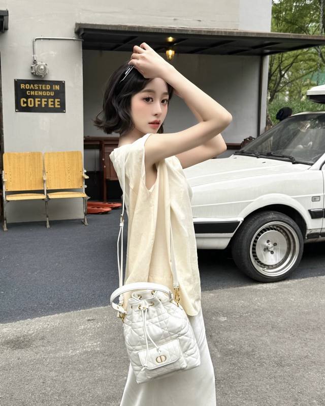 批 这款Dior Caro 水桶包是二零二五秋季成衣系列新品,彰显