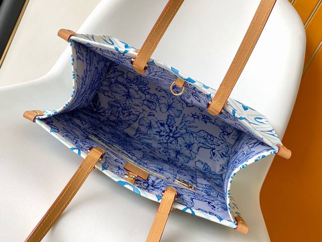 动态芯片 M11262蓝色 M11265红色 顶级原单 本款 Onthego 中号托特包以 Monogram Tiles 帆布展现水彩效果 Monogram 印花 令 Lv Circle 标识点睛中央 牛皮革裁出手柄与隐藏式肩带 铆钉栖身角落袢带 充裕构型可收纳笔记本电脑和日常所需