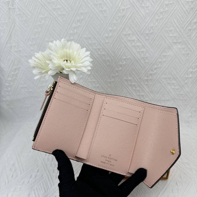 风格柔美而功能强大 此款小巧的Victorine钱夹是适宜随身携带的上上之选 标志性Monogram帆布搭配多彩皮革内衬 风格时尚 而极为实用的设计确保信用卡与私人财物安全存放 取用便捷