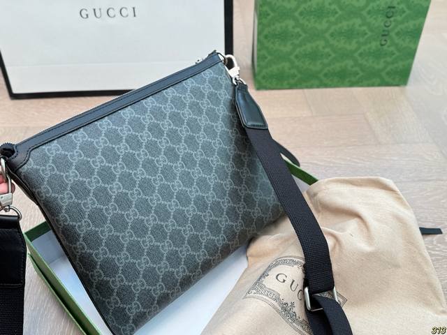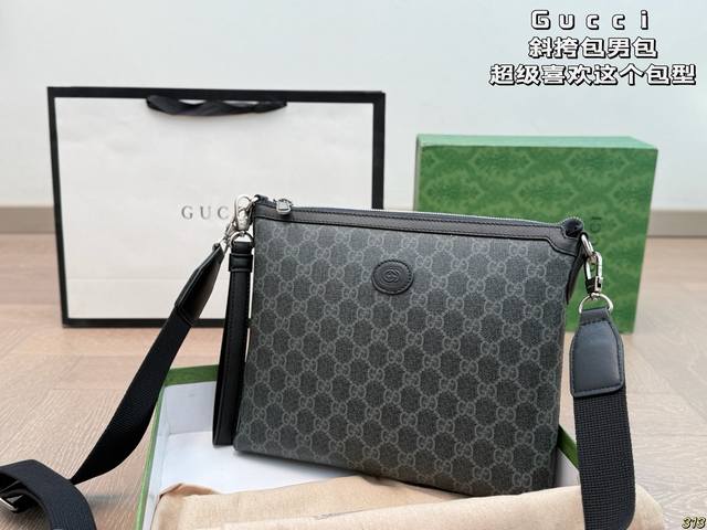 配盒 Gucci古驰 邮差包单肩斜挎包 男款 原版五金