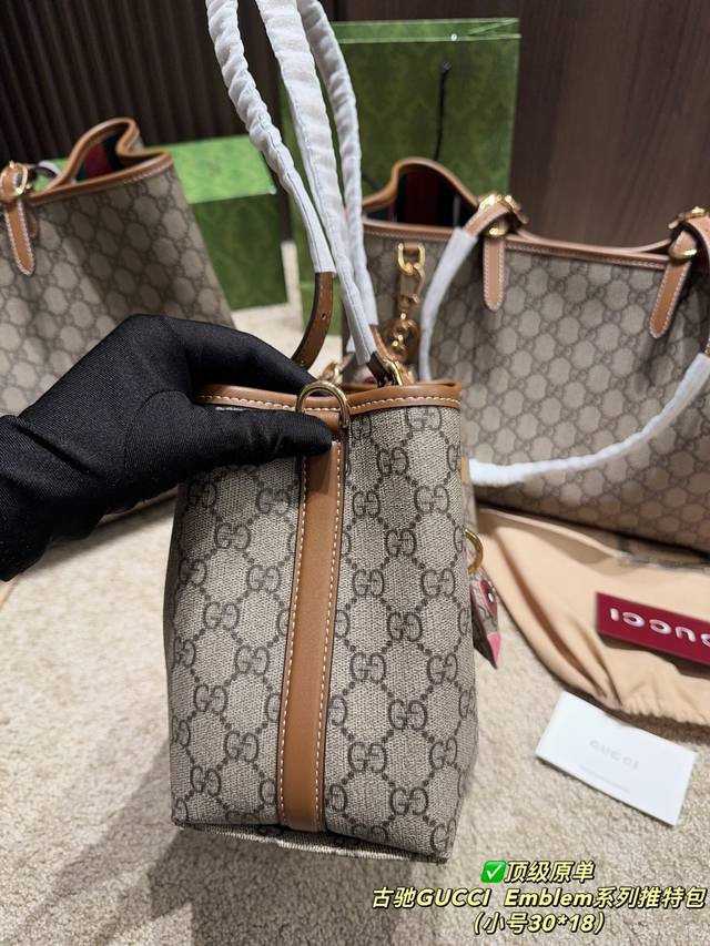 超级时尚的大热最新Gg Emblem系列 无论托特还是水桶都配有斜挎肩带 实用又美丽 最大亮点是超级轻盈 久背无压力