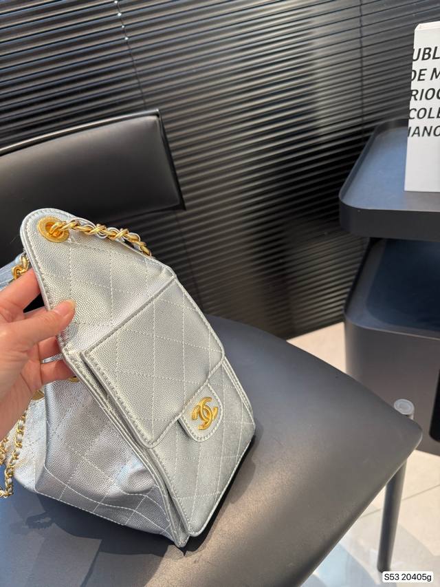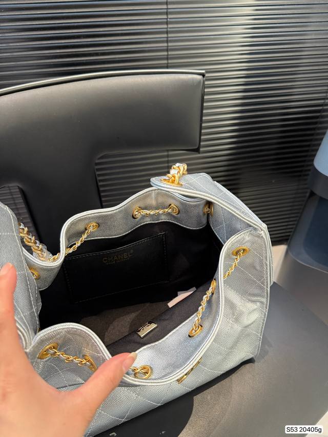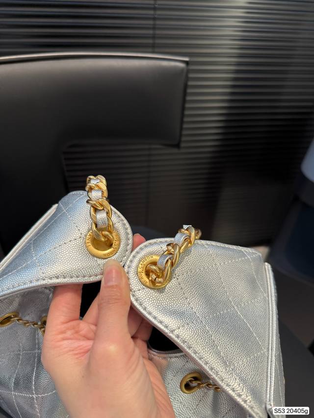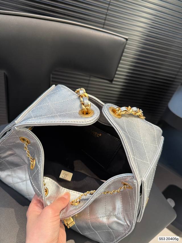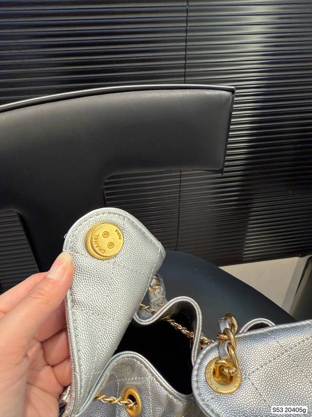 Chanel香奈儿24C银色双肩包可畏是这一季最热门的包包了是当之无愧惹眼又炸裂的包王漆皮镜面材质真的是相当吸晴五角星小包起...