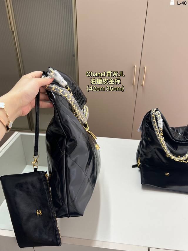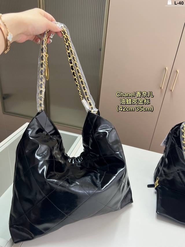 礼盒包装复刻版 原版皮尺寸32.35 小号 35.42 大号 香奈儿 24C 22Bag垃圾袋 Chanel 纯皮版 头层牛皮 链条设计随意感更加丰富外观简洁且