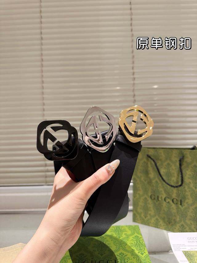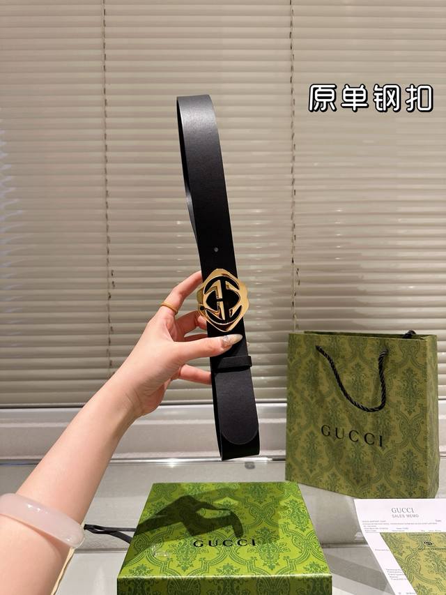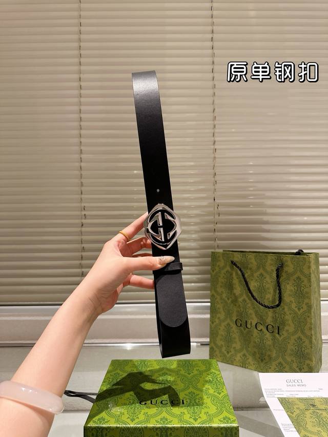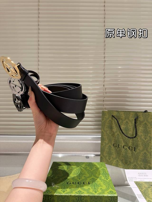 / 钢扣 高版本 腰带 Gucci牛皮皮带 热门款 男女通用皮带里面最火的版本啦 质量很好 全套包装 五金绝对不褪色 皮带头和专柜一样的哦 配礼盒手提袋发票