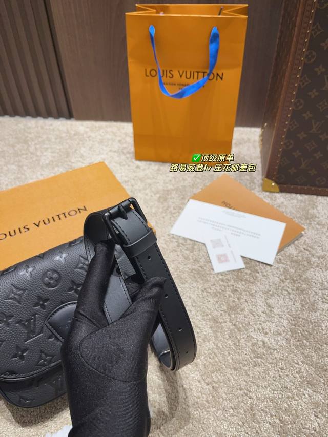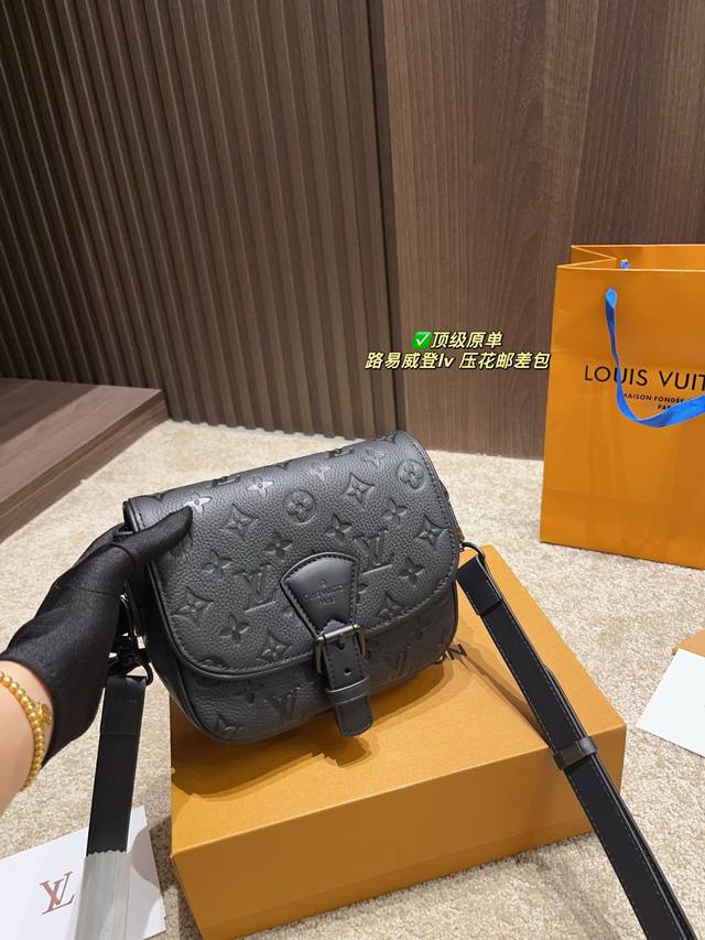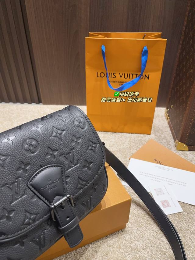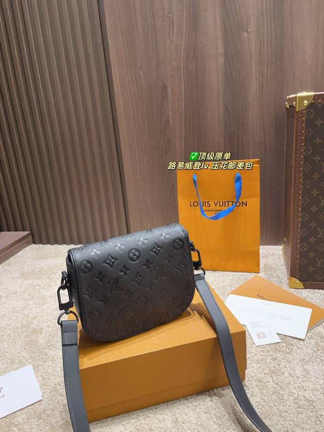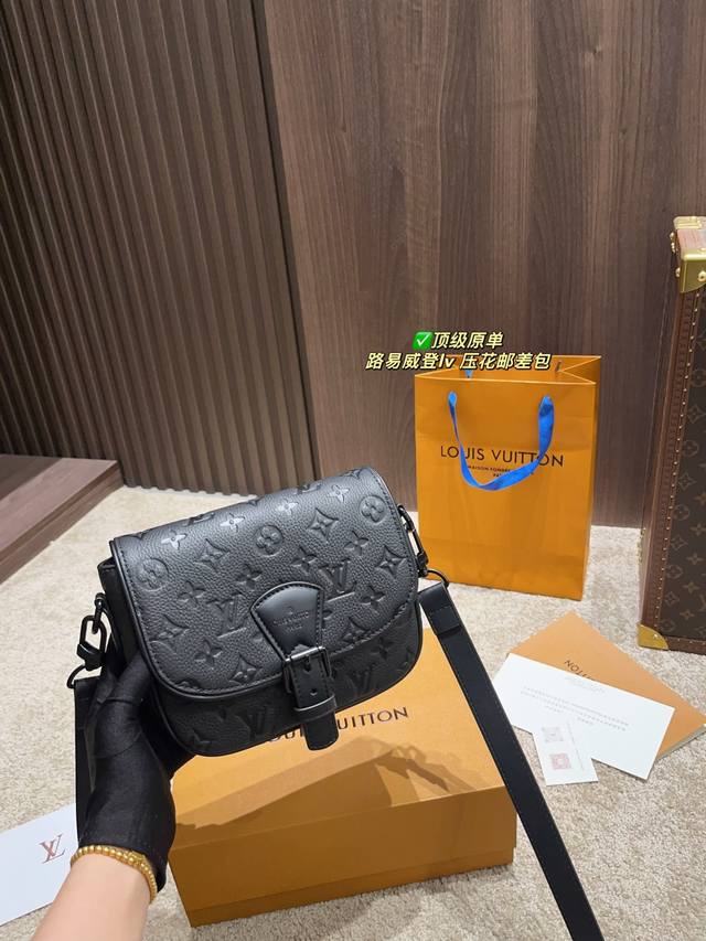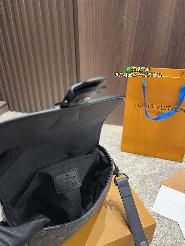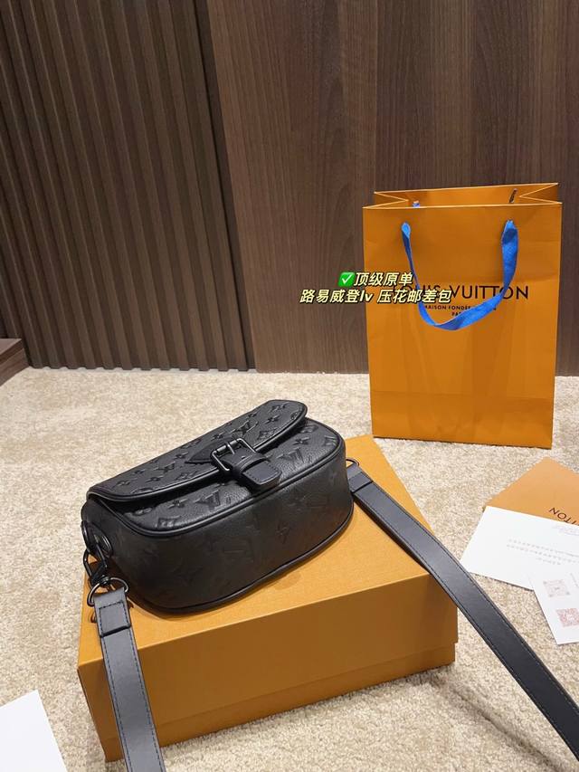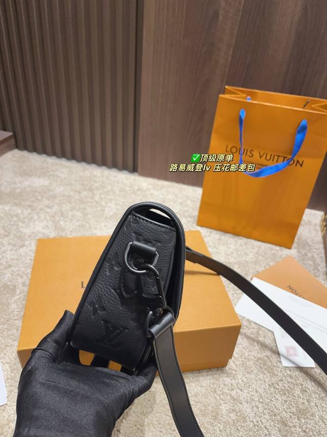 顶级原单 配折叠盒尺寸20.14 路易威登Lv 压花油差包 这款邮差包单看一般 但是上身感觉美爆了 感觉这款很快就会火 黑色很百搭 日常出行物品 都可放得下 压