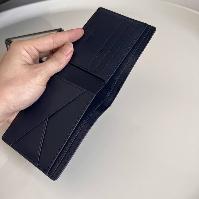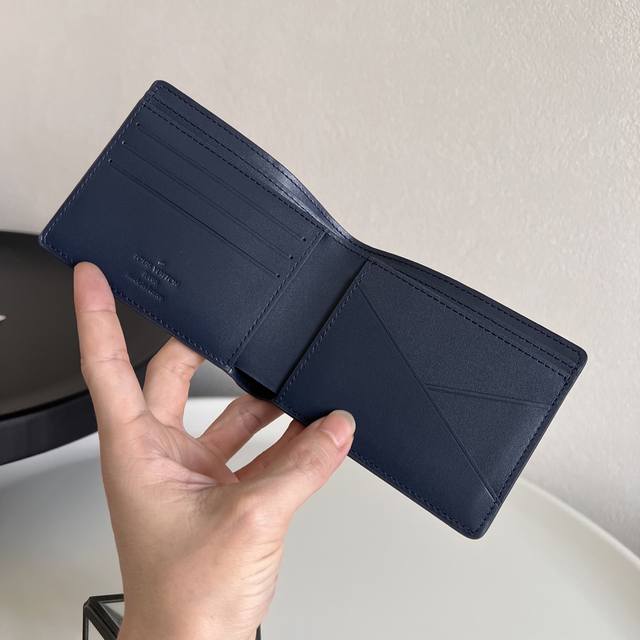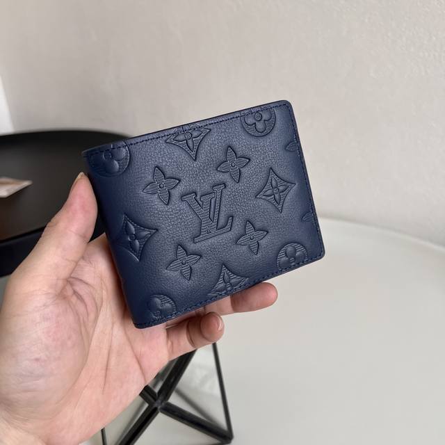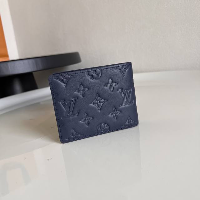 芯片版 M14787蓝色 男士短夹 此款路易威登Multiple钱夹设计清爽简洁,蓝色Monogram Shadow小牛皮面料质地十分柔软,饰有标志性Monogram压纹。尺寸小巧,极为便携,内配多个信用卡插槽与票据和纸钞隔层,实用性出众。