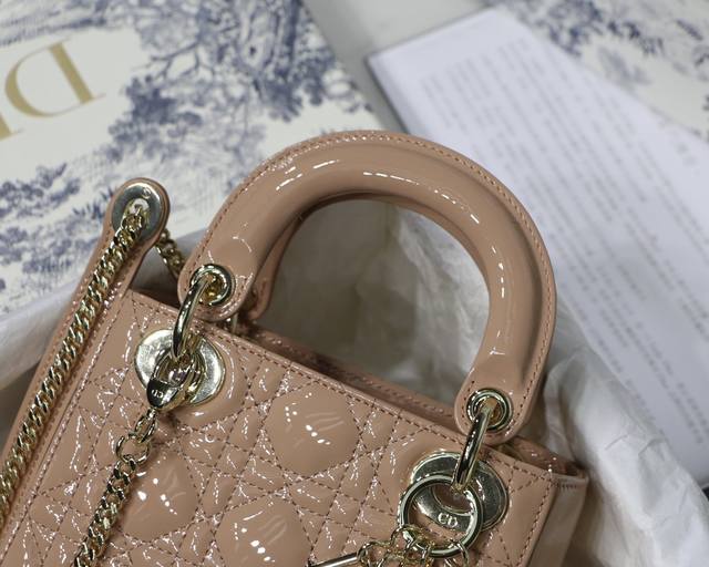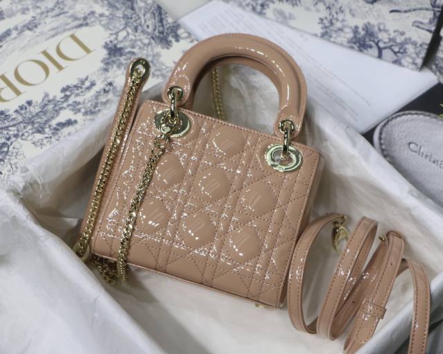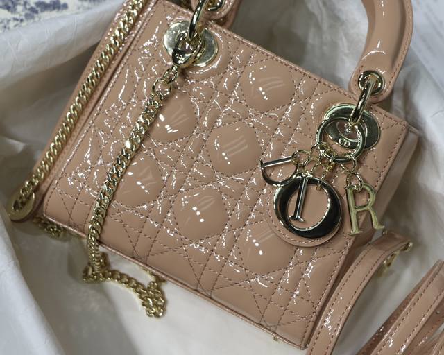 粉色 Lady Di0R Mini 3格 Mini 原单 进口牛漆皮 三格小迷你 配备双链条 一条经典可调节肩带 一条金属链条肩带,实在太美了链条长120Cm尺