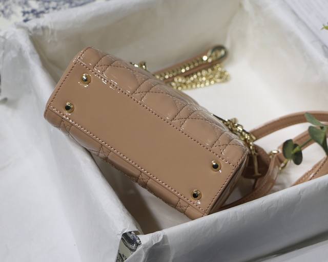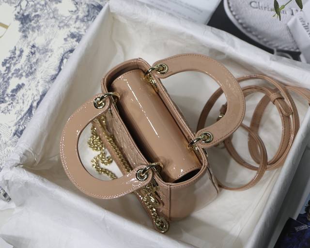/ 粉色 Lady Di0R Mini 3格 Mini 原单 进口牛漆皮 三格小迷你 配备双链条 一条经典可调节肩带 一条金属链条肩带,实在太美了链条长120Cm尺