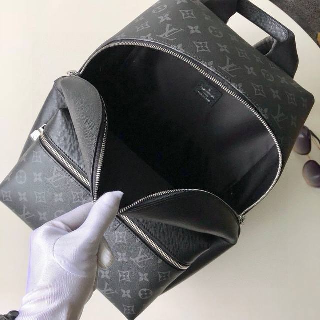 Discovery 小号双肩包糅合 Monogram 帆布与 Taga 皮革,重译经典校园潮流设计。光泽外层包裹两个内袋和一个 Ipad 内袋,两条可调节皮质肩带确保舒适背携。尺寸:40X30X20Cm