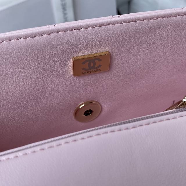 浅金Chanel 21K最新Mini Cf Handle 手提包 As2431 经典菱格口盖包 饰以精致经典链子搭配手提,细腻羊皮:润饰手袋,脱颖而出,演绎永恒