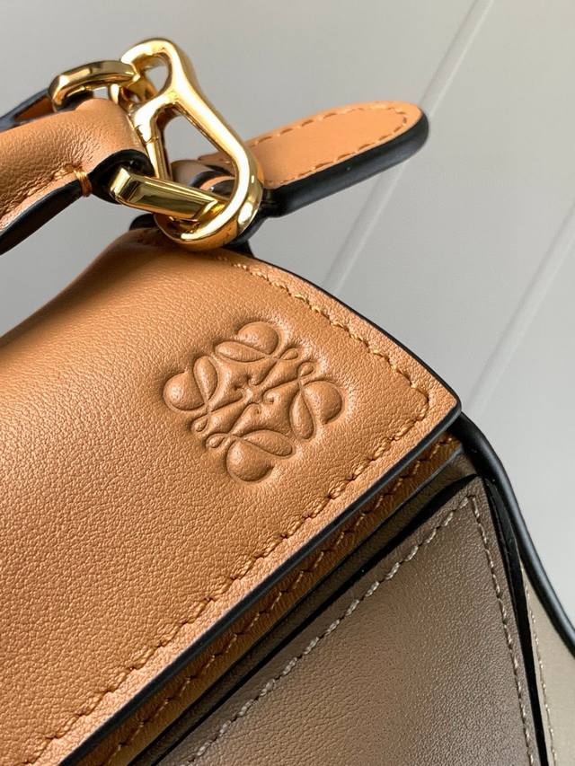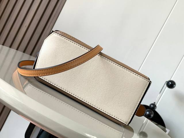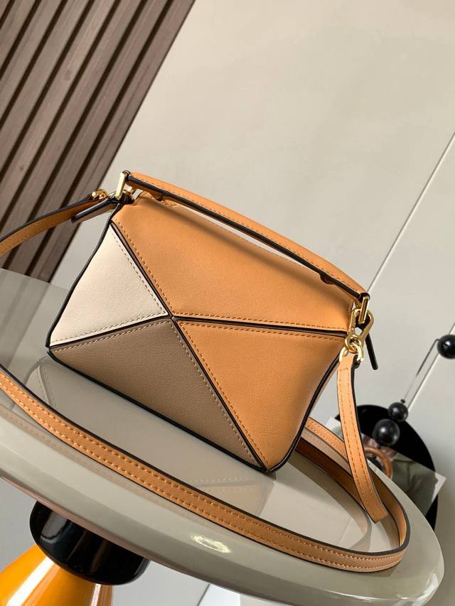 爆款几何包迷你18Cm原厂进口纳帕小牛皮Puzzle手袋是创意总监乔纳森.安德森为 L0Ewe 推出的首款手提包长方体形状和精确的切割技术创造了 Puzzle 独特的几何线条。这个迷你版本采用经典牛皮革制成迷你 Puzzle 可以容纳例如一只小号垂直钱包、大多数尺寸的手机 最大6.1英寸 和太阳镜盒斜挎、肩背、手拿或顶部提手携带.可拆卸肩带包包自身重量几乎忽略,炒鸡实用,出门装手机小钱包口红粉饼,毫无累赘感,轻松愉快人生从此开启 你们最关心的Xs,Plus都Ok哈