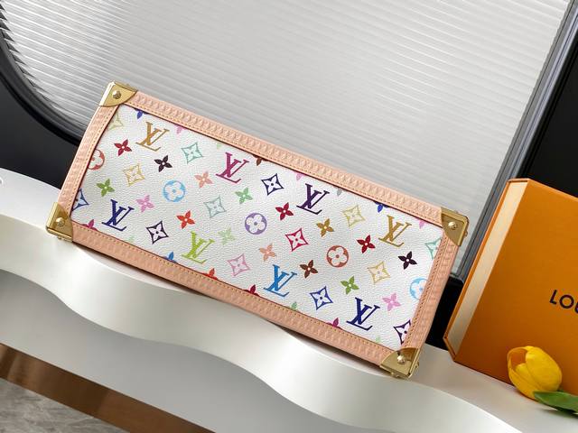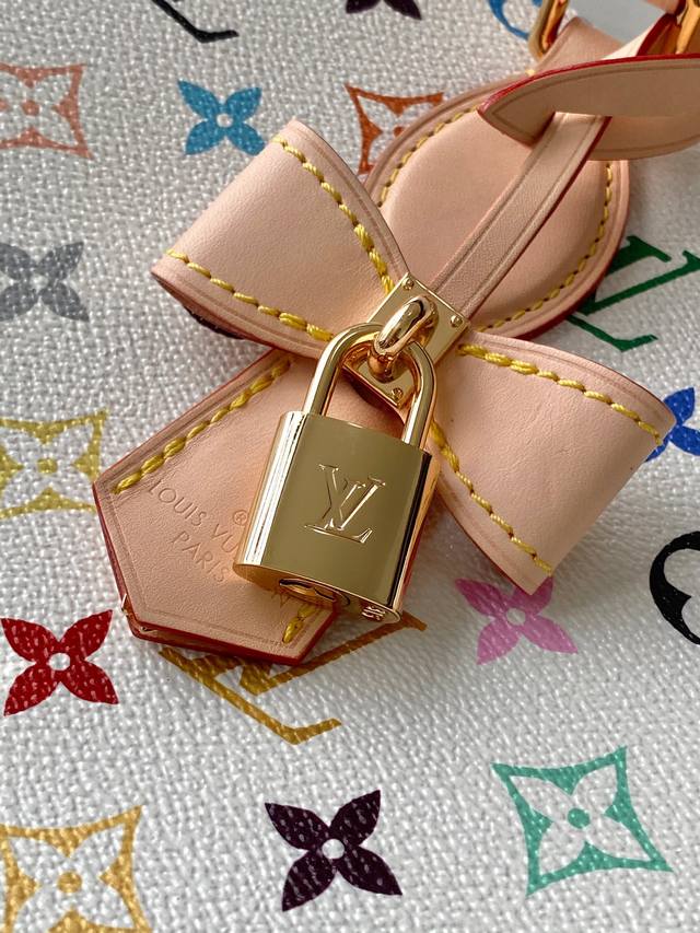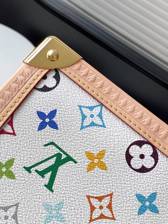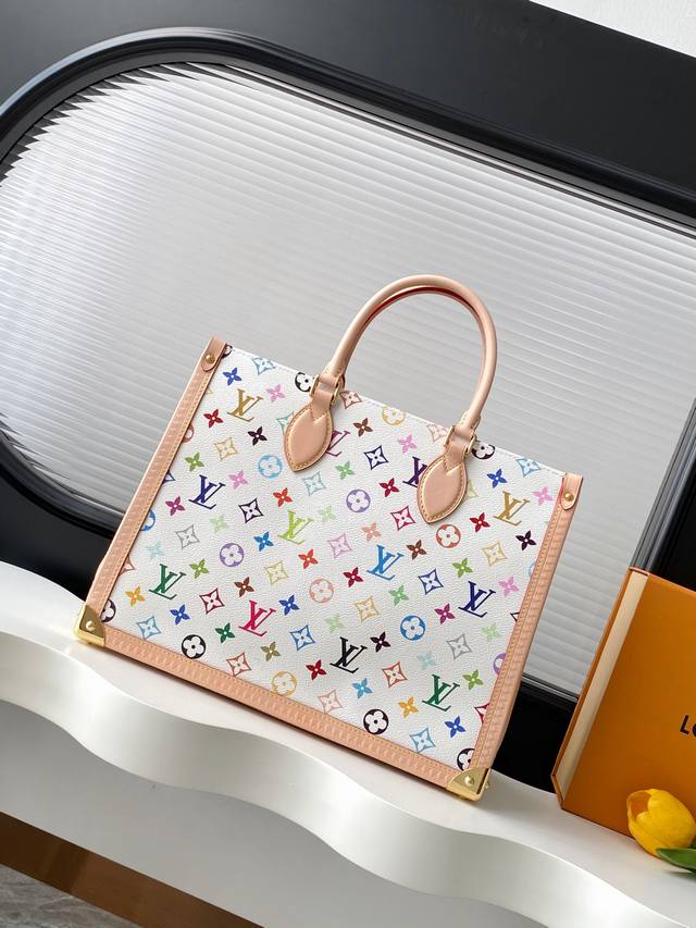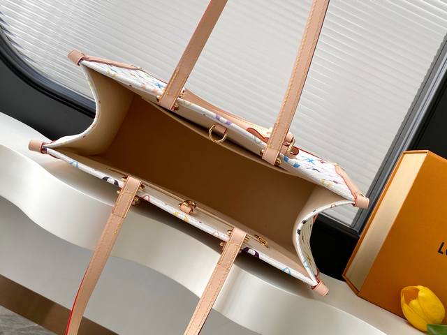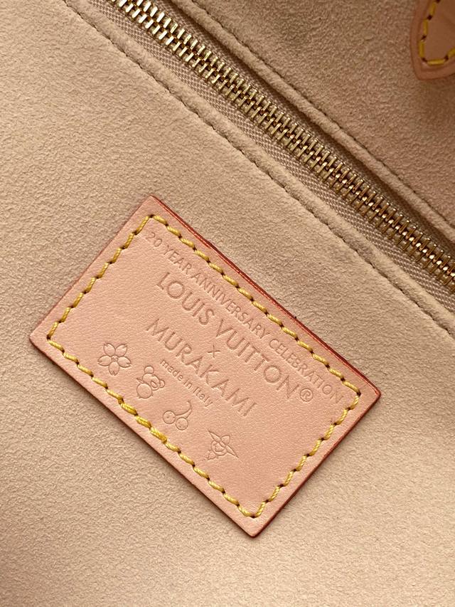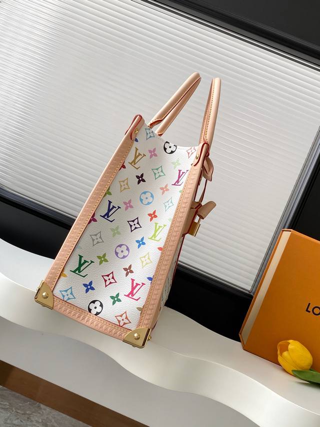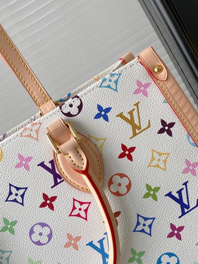 路易威登 X 村上隆再版系列以灵动笔触演绎 Onthego 中号手袋。缤纷 Monogram 帆布包身、牛皮革饰边和 Lv X Tm 钥匙包彰显考究格调,莹亮包角回溯路易威登传统行李箱设计,肩带和顶部手柄实现多种背携方式。