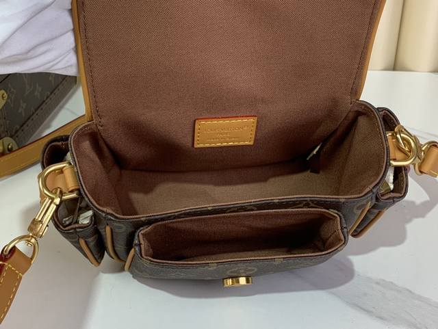 本款 Cargo 迷你手袋出自 Monogram Archive 系列,选用柔软 Monogram 涂层帆布塑造都市构型,再以做旧牛皮革饰边和耀目金属件传递复古气息。主隔层、开口式前袋和开放式侧袋彰显功能考量,可拆卸并调节的肩带实现肩背或斜挎体验。