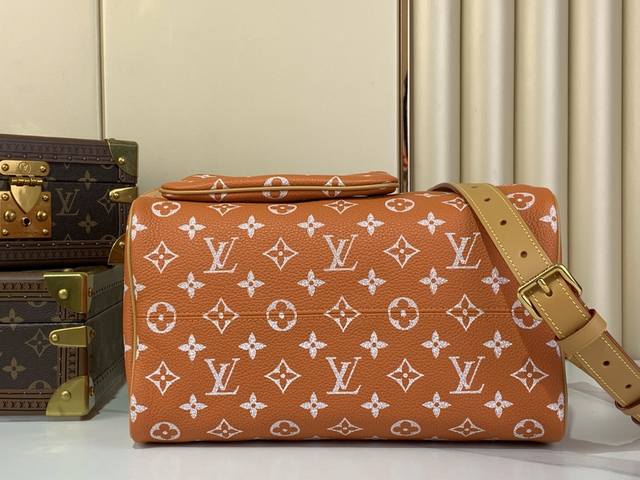 本款 Speedy P10 BandoulièRe 30 Monogram 皮革手袋以柔软牛皮革传递华贵质感。Monogram 印花临摹帆布上的Monogram 元素。抛光金属件、羊皮革内衬与内置标牌彰显创意总监Pharrell Williams 对考究细节的专注。