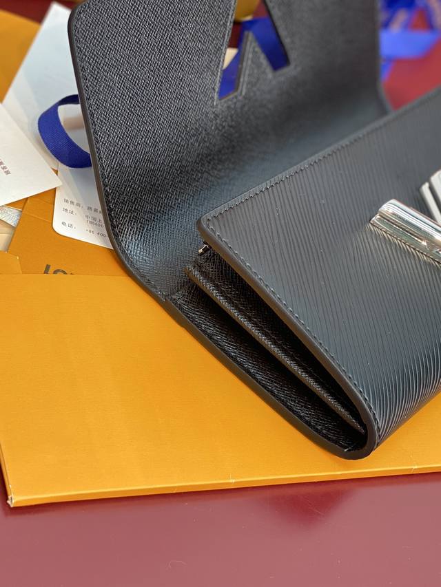 / 出厂价P M68309黑色 Twist钱夹由Epi皮革制成,将灵巧实用的设计和高度的时尚感融为一体,营造出别样的风格。 Twist钱夹采用转锁设计,以手指交叉的