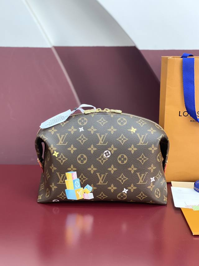 出厂价P M14891 大号化妆包!芯片版!本款大号化妆包融合 Monogram 涂层帆布、牛皮革饰边和耀目金属件,以缤纷笔触描绘路易威登吉祥物 Vivienn