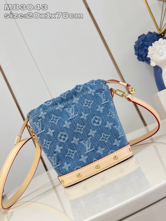 / 出厂价P 顶级原单 M83043 這款Nano Noé背包於今季煥然一新,用上現代風格的Denim藍色,與對比鮮明的皮革飾邊互相襯托。背包採用有機棉質面料製作,