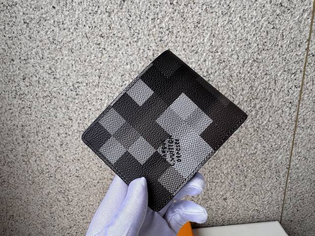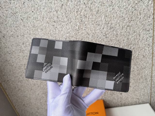 顶级原单 M14927短夹纤长钱包由Damoflage黑色涂层帆布制成,采用单色调的灰色和黑色。将Pharrell Williams的设计美学应用于该品牌的传统Damier Graphite印花,标志性的方格图案被像素化,以体现现代感。外观可能因图案位置的不同而略有不同。尺寸:11X2X8.5Cm。