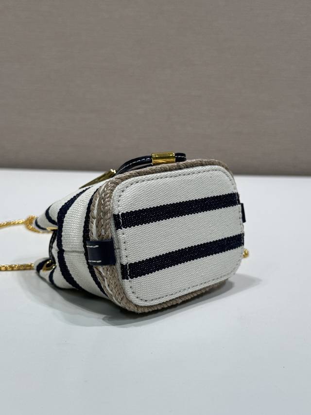 这款迷你小包崭新诠释经典航海风元素,呈现典雅的夏日质感与精致细节。选用条纹织物打造,底部的设计灵感源自草编鞋,搭配皮革抽绳与精致可拆卸肩带。太可爱了可仙可酷,难道你不心动夏天必备,美妞们,赶紧入手吧。又是一款永久不过爆款长9X高9.5X底6Cm