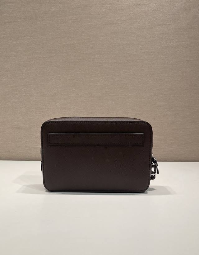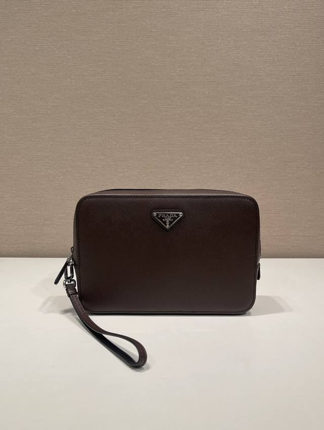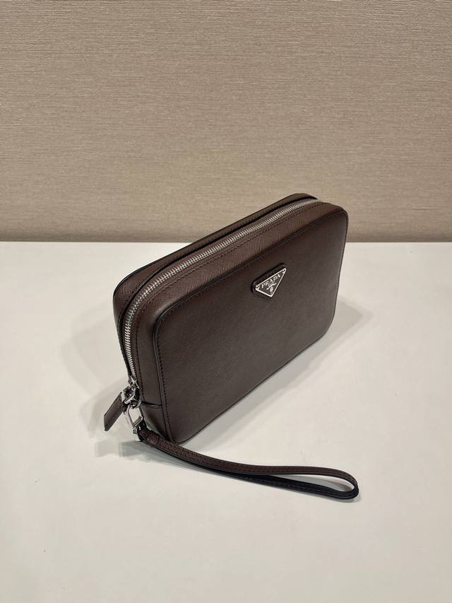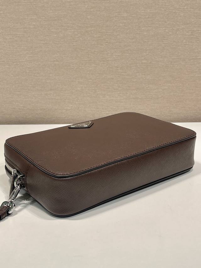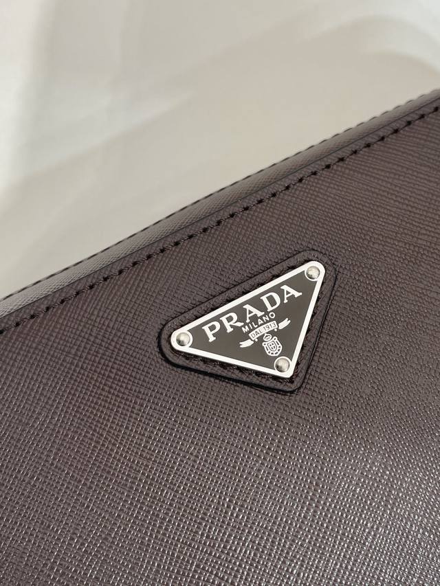 这采用进口Saffiano皮革男士手包饰以经典的三角形徽标,背部饰带与可拆卸侧带皆可满足使用需求。 是一款经典与潮流设计精彩碰撞的男士手包。又是一款永久不过时的男士手包长23.5X高15.5X底6.5Cm