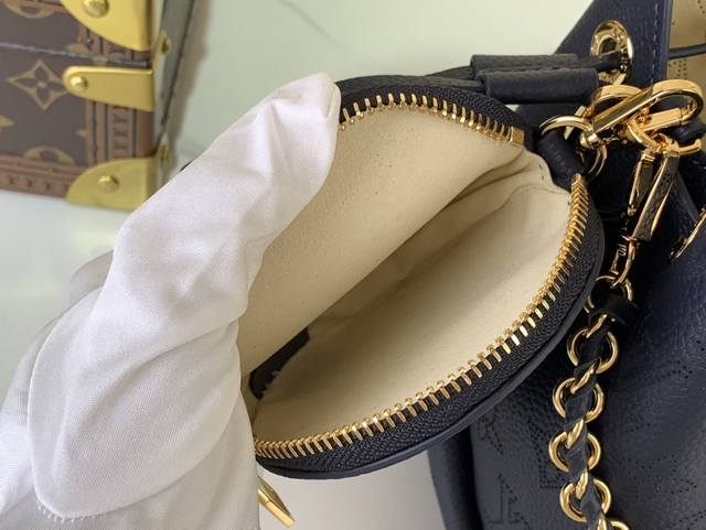 本款 Bella 手袋为 Monogram 镂花穿孔皮革渲染考究色调,再以编织链条点亮细节。恰宜尺寸可轻松收纳日常所需,圆形零钱包令硬币实现有序归集。背携方式灵活多样,成就相伴日常的优雅之选。