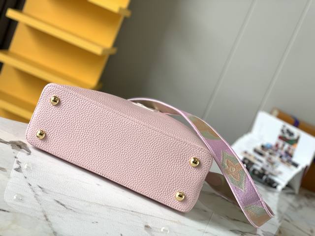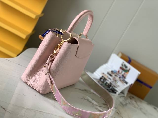 本款 Capucines 中号手袋邂逅繁花的澎湃美感,为宽幅肩带刺绣大号 Monogram 花卉图案,与 Taurillon 皮革包身的经典色调互为映衬。取下肩带即可展露素雅格调。