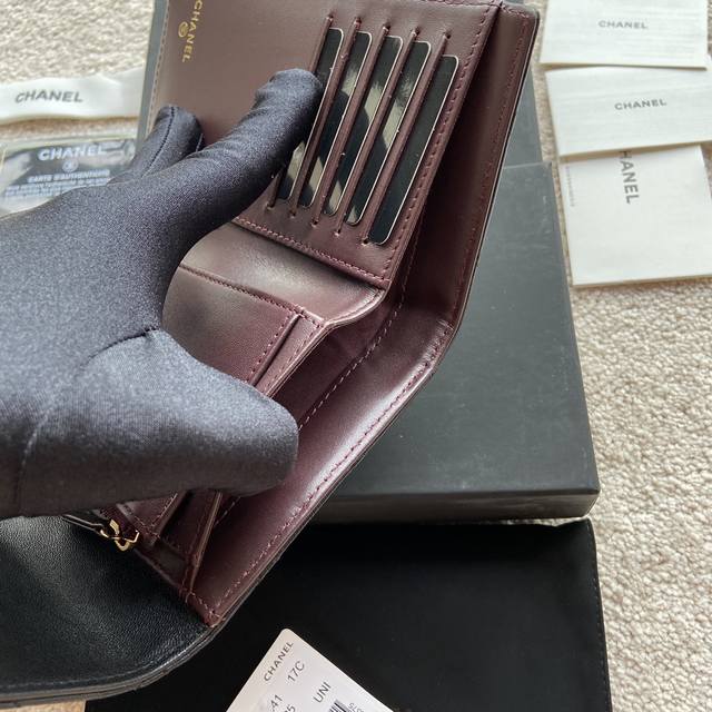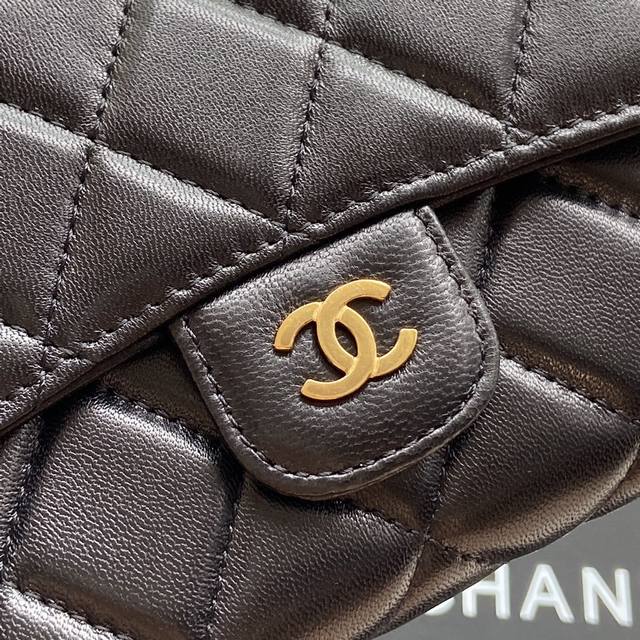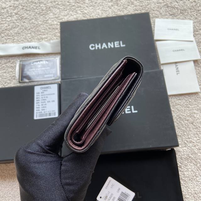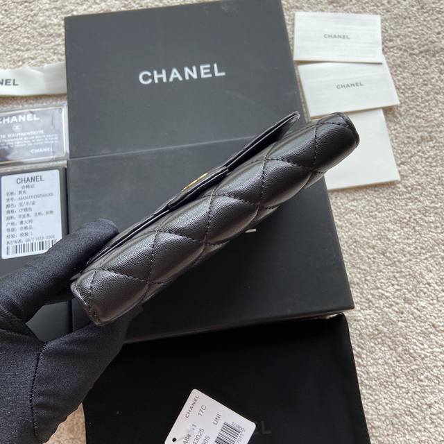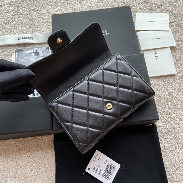 原厂皮 小香进口意大利羊皮 货号:A84341 尺寸:W15×H10×D2.5 颜色:黑色羊皮金色钢唛