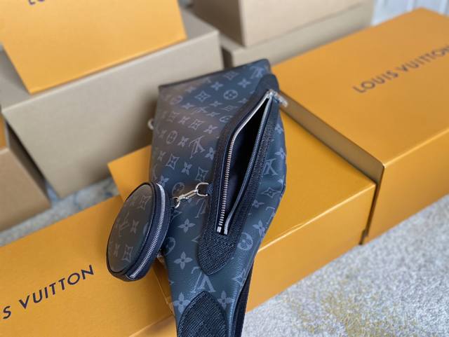 顶级原单 M30936 黑花 Duo 单肩包拼接 Monogram 帆布和 Taga 牛皮革,设有存放零钱或其他所需的可拆卸拉链袋和拉链侧袋,以悠闲格调诠释多元
