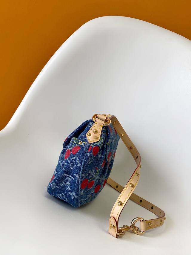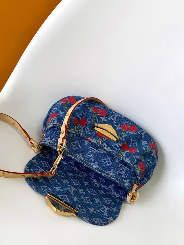 / M13680 顶级原单动态163 本款 Sunset 手袋取材Monogram 丹宁布,以复古笔触塑造圆润构型,再借醒目插扣点亮设计。明丽樱桃刺绣彰显路易威登