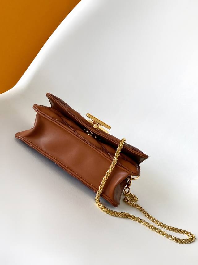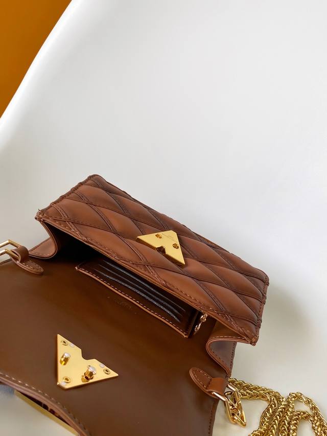 M13139黑色 M13841棕色 顶级原单 动态163 Wallet On Chain Go-14 手袋选用华美绗缝羊皮革延续品牌标志性笔触,以 Lv 扭锁点亮视线,可轻松驾驭昼夜场合。可拆卸圆润滑链实现多种造型可能,亦可用作手拿包。20.0 X 12.0 X 5.0 厘米 长 X 高 X 宽