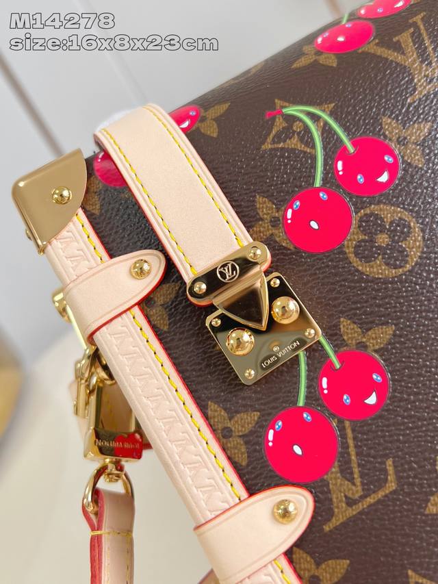 出厂价P 顶级原单 M14278 本款 Side Trunk 中号手袋满载路易威登 X 村上隆复刻系列的灵动意趣,为经典 Monogram 涂层帆布融入甜美樱桃