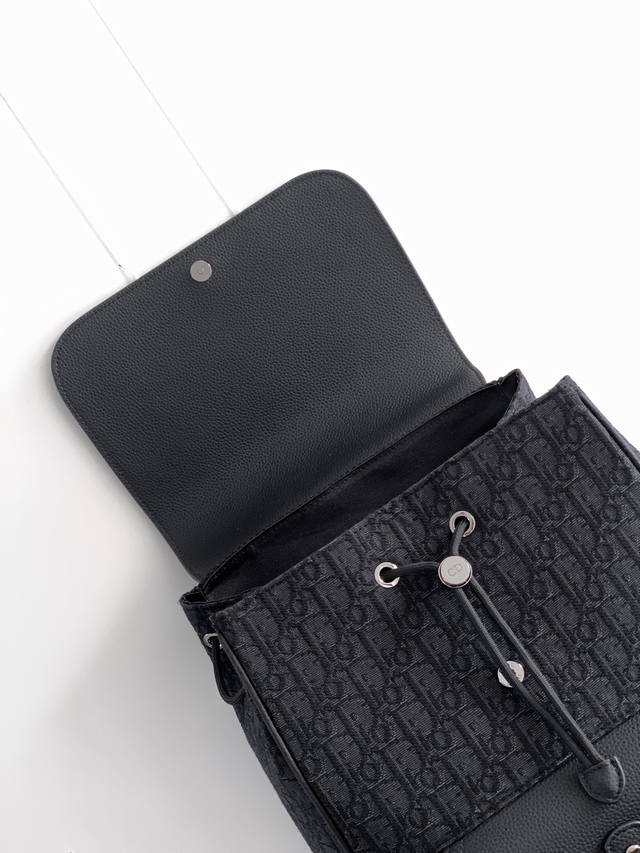这款马鞍双肩背包是二零二四秋季男装系列新品,采用时尚的原创设计,突显马鞍风格。采用黑色 Oblique 印花面料精心制作,正面饰以同色调粒面牛皮革细节和 Dior 标志。空间宽敞,设有一个隔层,可收纳各种日常用品,正面马鞍翻盖口袋搭配铝扣,可收纳钱包、钥匙、耳机或手机,便于轻松取用。实用百搭,是各式造型的点睛之笔。