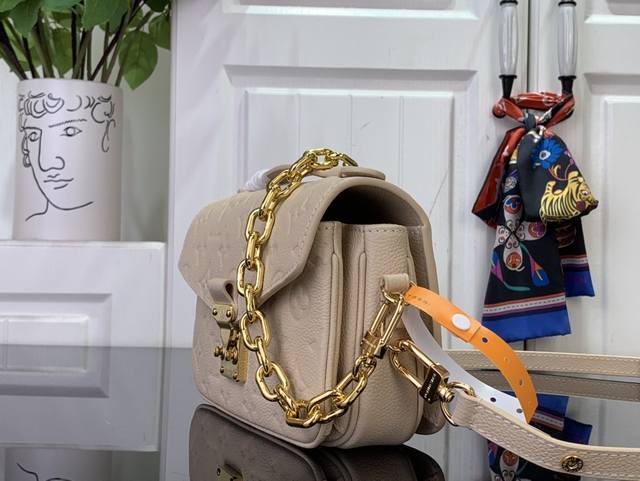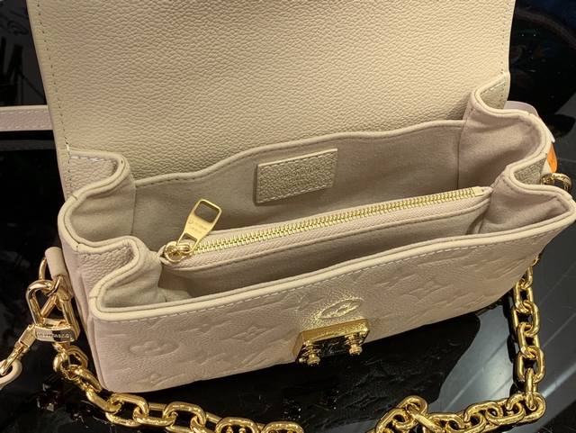 作为Monogram Empreinte系列的一部分,这个版本的Pochette MéTis East West既时尚又实用。它由牛皮制成,饰有金色五金,包括标志性的S型锁和可拆卸链条。井然有序的内部提供三个带中央拉链口袋的隔间,外面还有一个隔间。