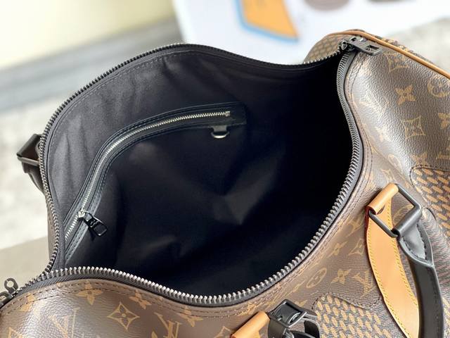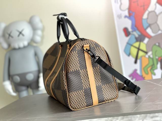 批价 顶级原单 M40360 这款合作款的Keepall,在维持经典包型的基础上做了包身跟背带的撞色处理,大块棋盘格的设计吸睛又高级,跟经典款比起来显得活力十足