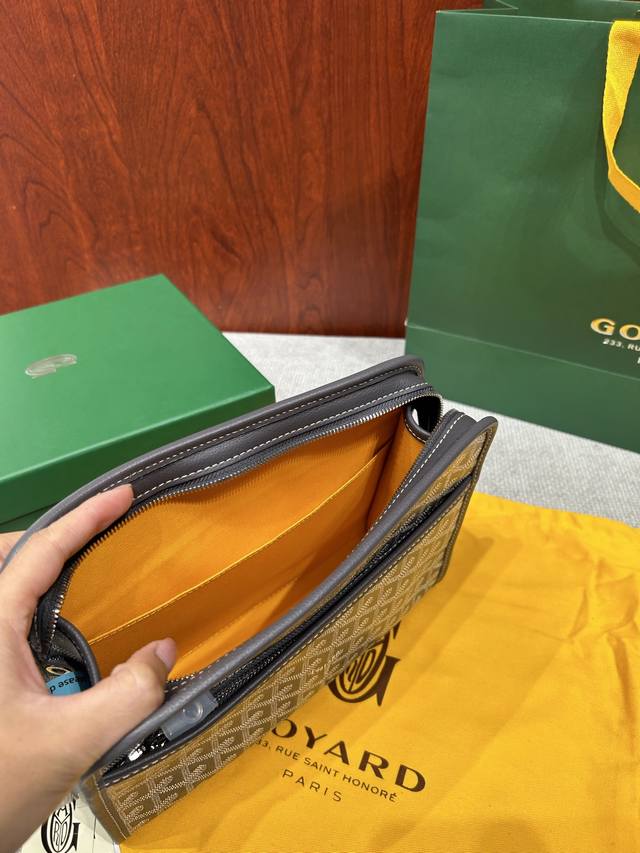 Goyard Jouvence 洗漱包系列一直是Goyard生活和旅行艺术的经典之作!牛皮手工制作 搭配黄色里布、内外均有一个隔层设计简约轻盈,牢固耐用,内衬干净整洁,外观优雅时尚,是旅途中不可或缺的功能性产品