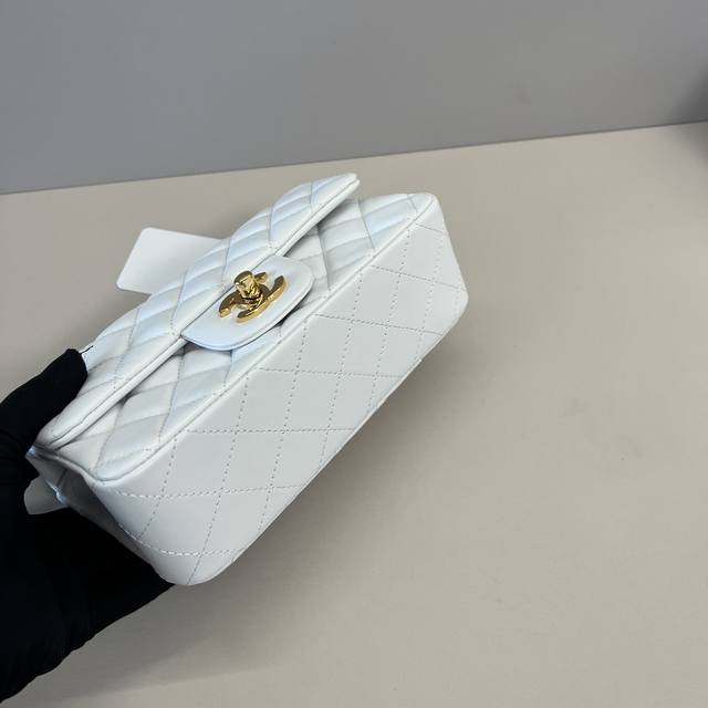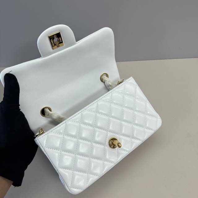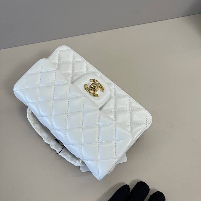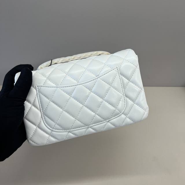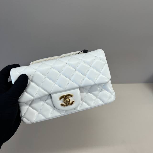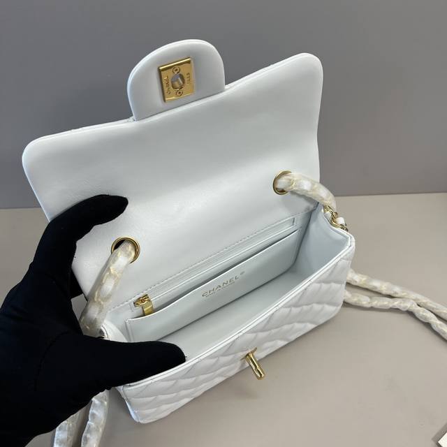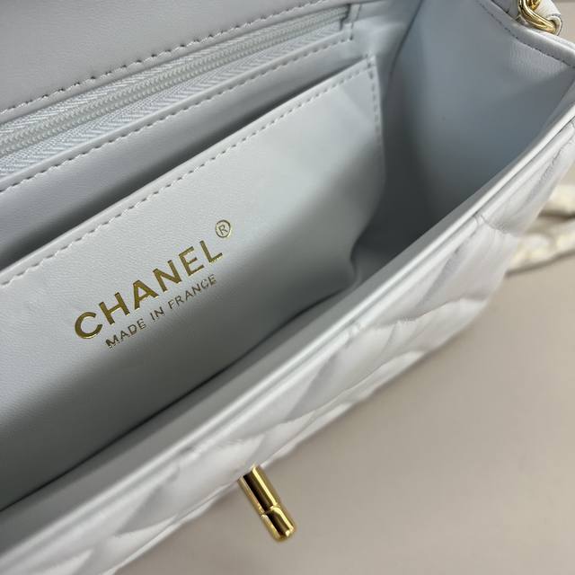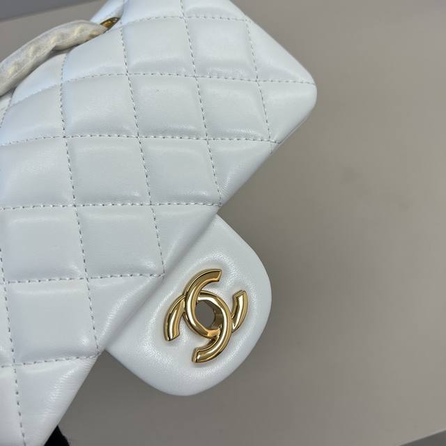 浅金Chanel 21K最新Mini Cf Handle 手提包 As2431 经典菱格口盖包 配人头挂饰 饰以精致经典链子搭配手提,细腻羊皮:润饰手袋,脱颖而