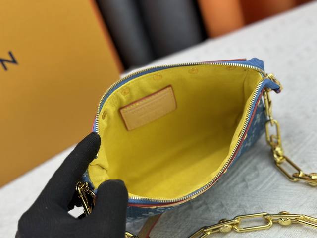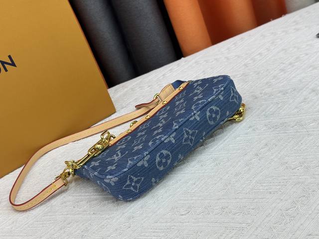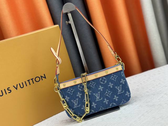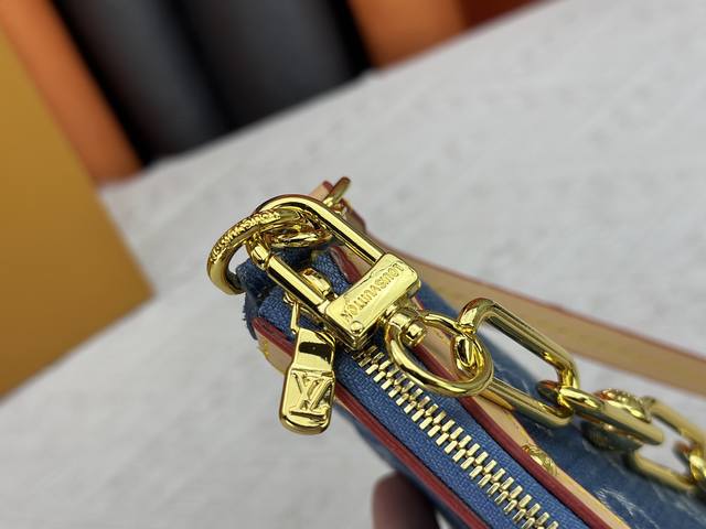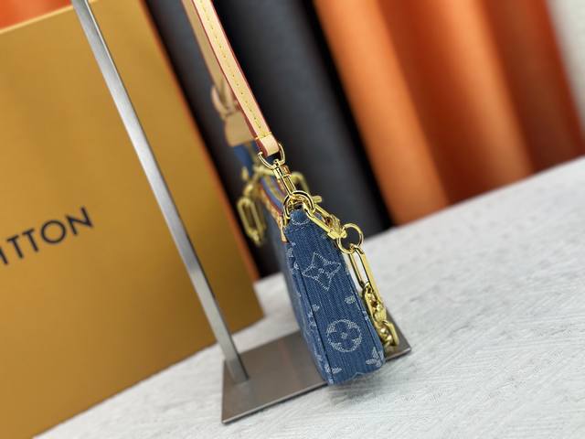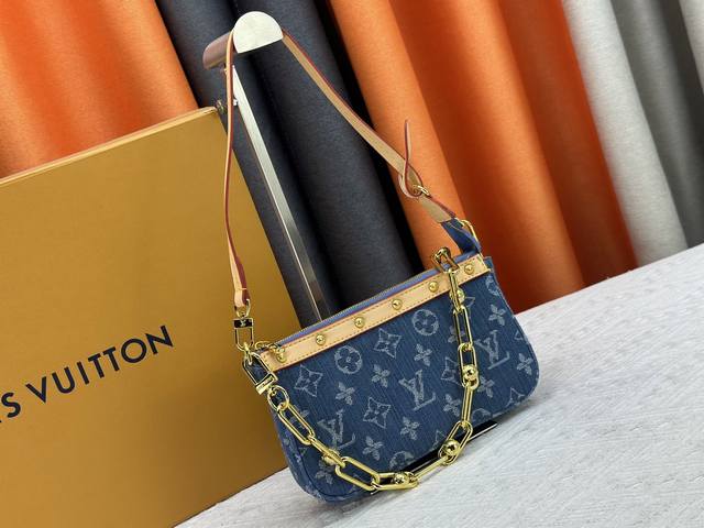 M13404 丹宁牛仔本款 Pochette Accessoires 手袋取材涂层帆布,以缤纷 Monogram